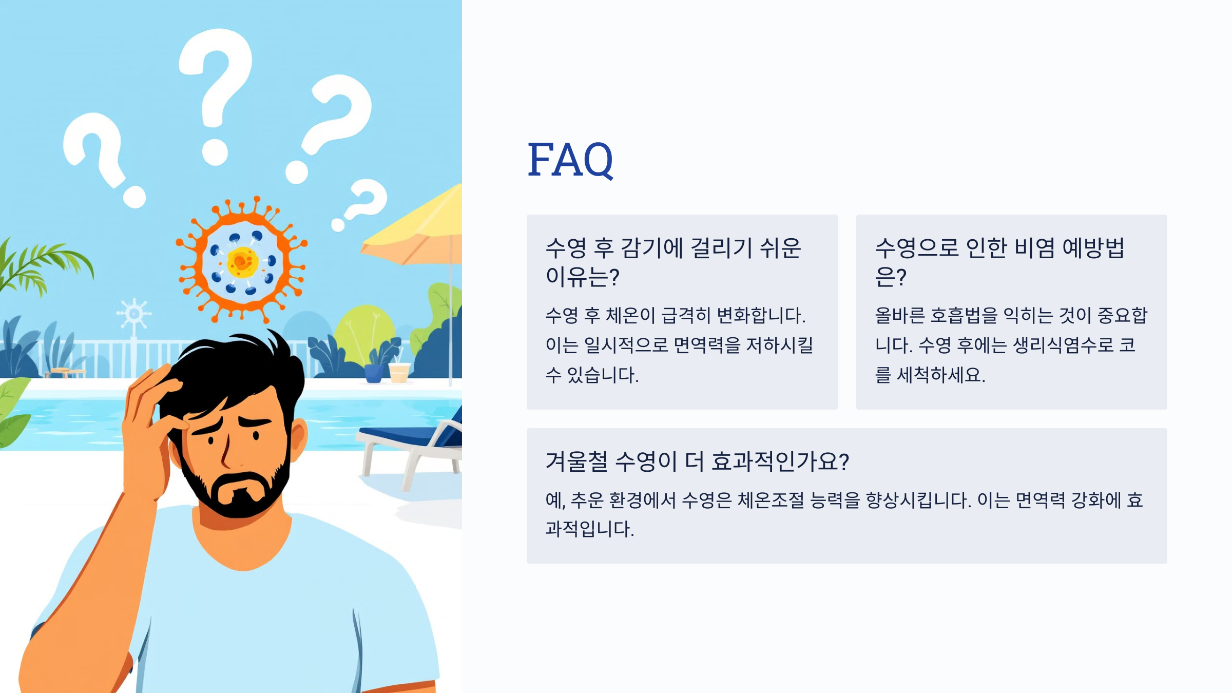 Q7. 수영이 몸살이나 감기를 악화시킬 수도 있나요?