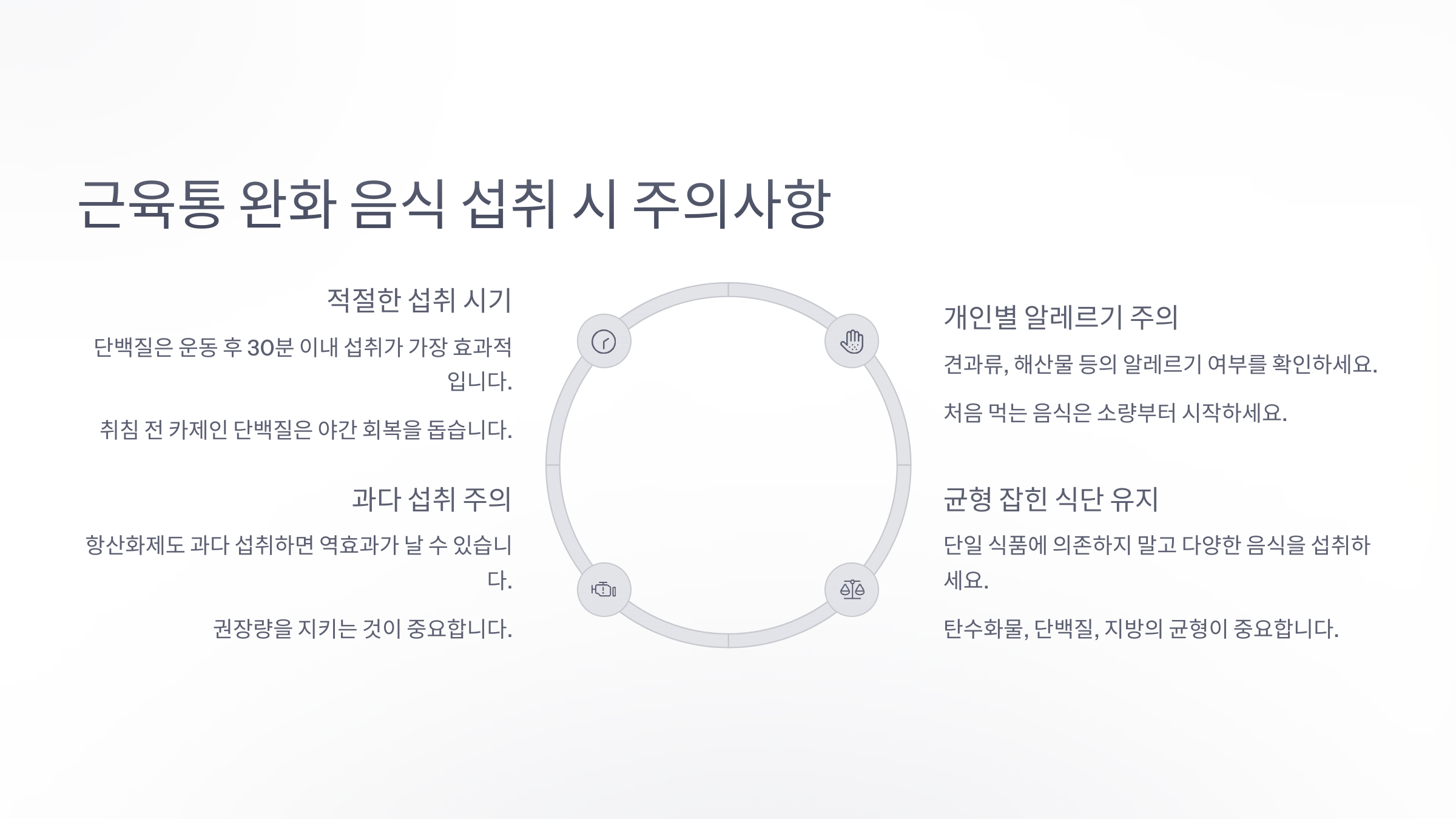 ⚠️ 근육통 완화 음식 섭취 시 주의사항