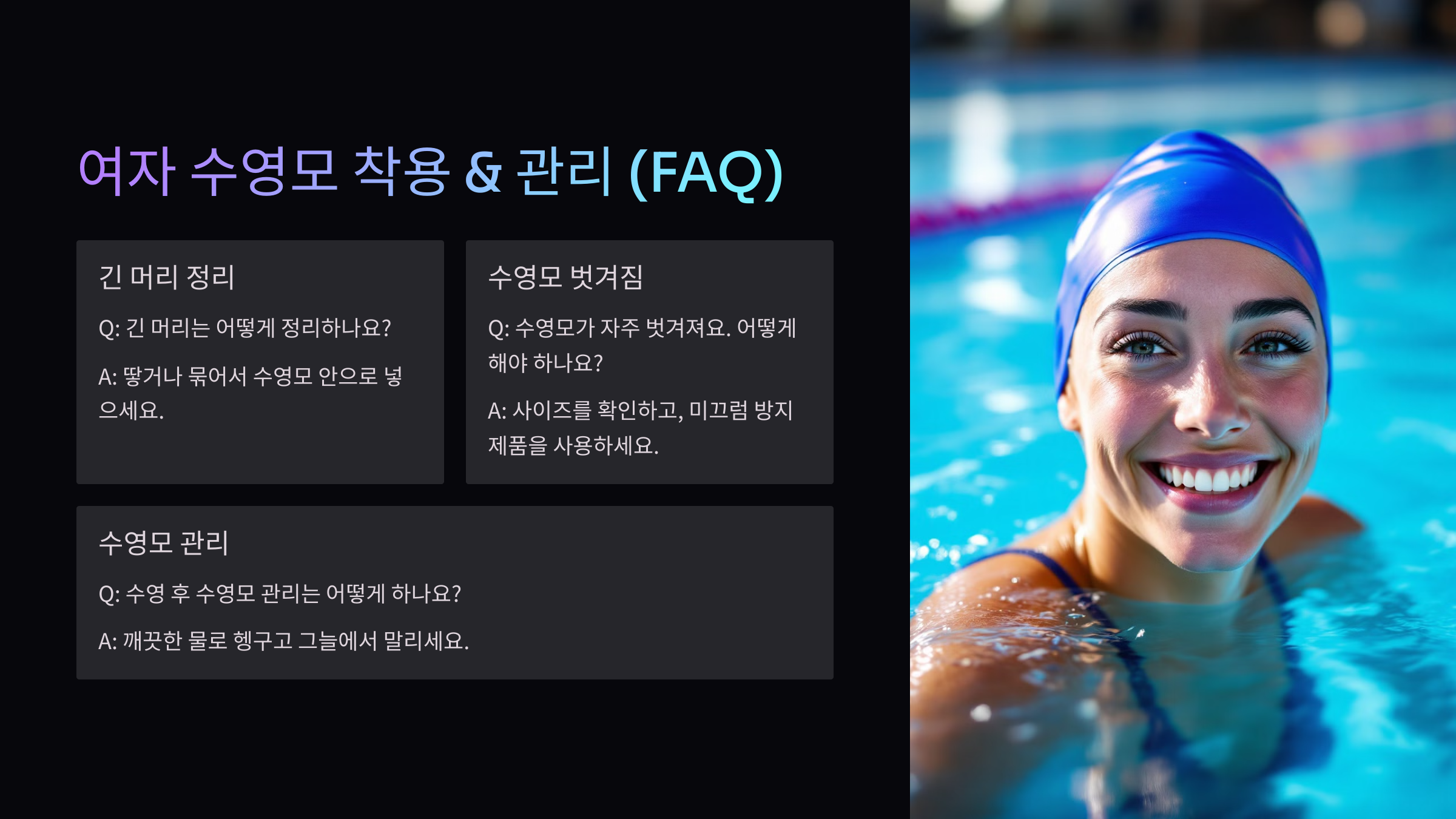 💡 여자 수영모 착용 & 관리 (FAQ)