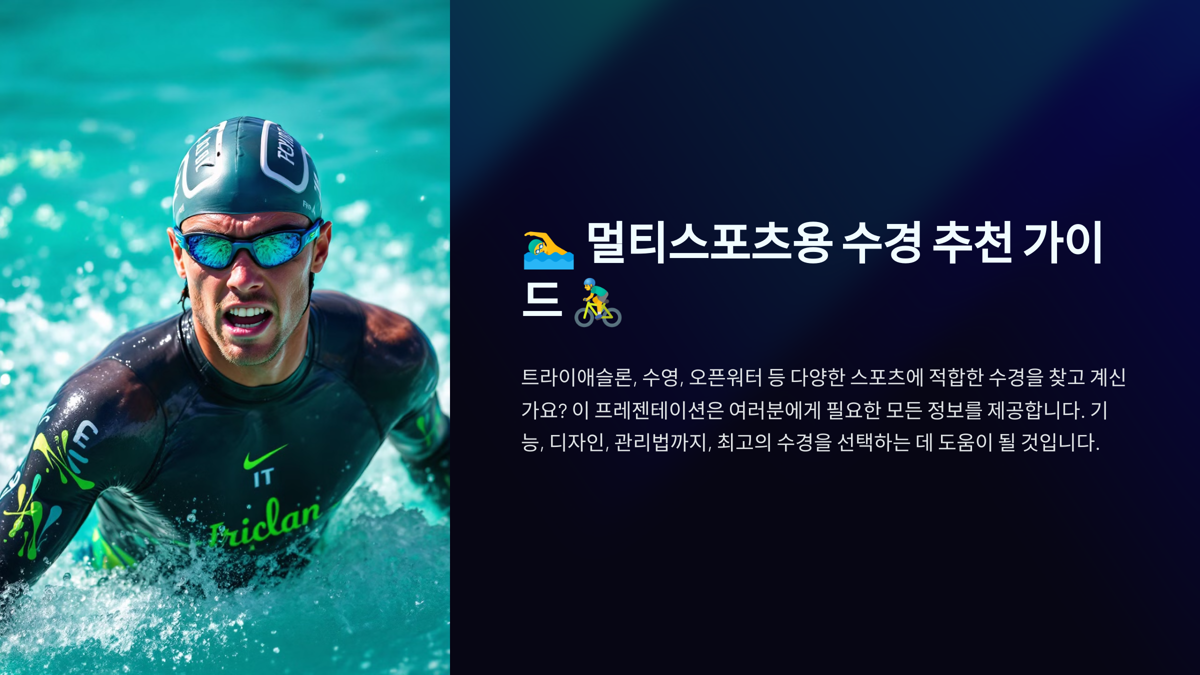 멀티스포츠를 즐기는 사람이라면 수경 선택이 정말 중요해요! 저도 트라이애슬론을 준비하면서 수경 하나에 이렇게 신경을 써본 적은 처음이었거든요. 장시간 착용해도 편하고, 환경 변화에도 적응 잘하는 제품이 최고입니다 😊