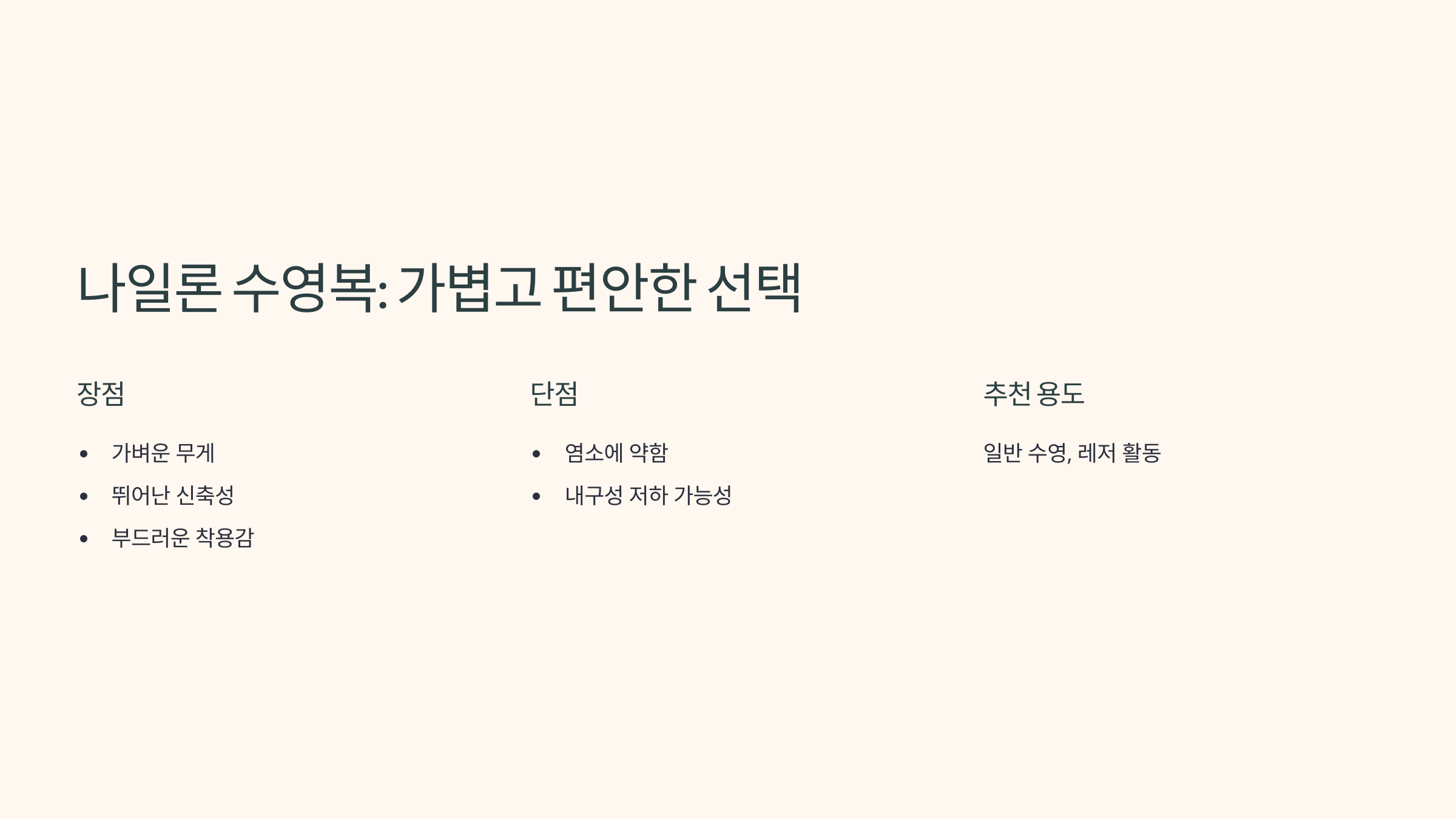 👙 나일론 수영복: 가볍고 탄력적이지만 내구성은?